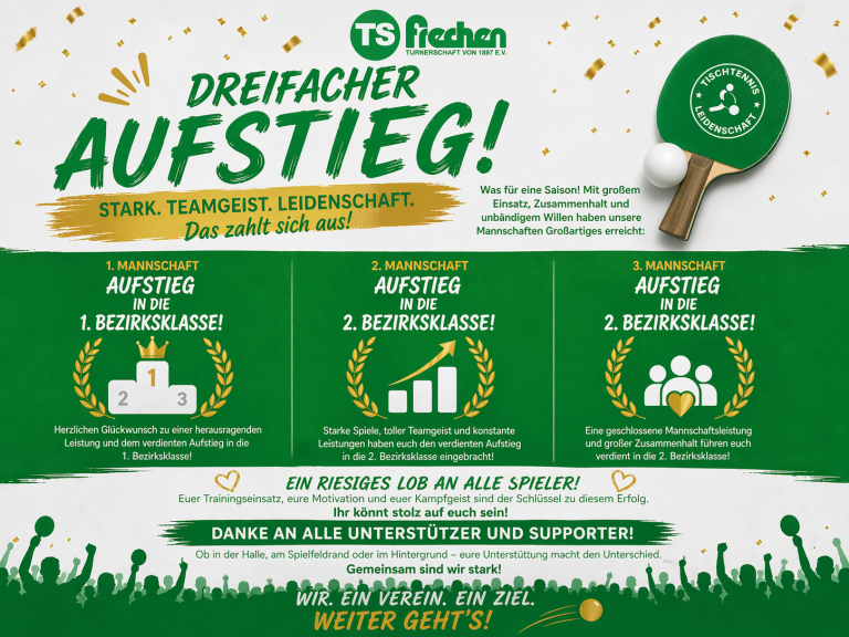 Dreifacher Aufstieg – was für ein Erfolg für unsere Tischtennis-Abteilung!