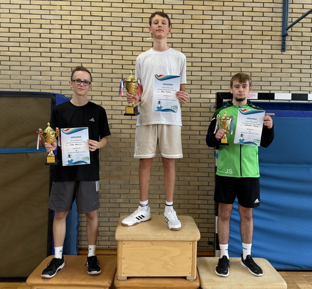 Am 27. September 2025 fand die spannende und faire Vereinsmeisterschaft der TS Frechen im Tischtennis statt. Mit großem Engagement traten zahlreiche Mitglieder an, um in packenden Wettkämpfen ihre Kräfte zu messen. In der Jugendkonkurrenz zeigten Paul Endig, Liam Nemitz und Johannes Stang herausragende Leistungen und belegten die ersten drei Plätze.